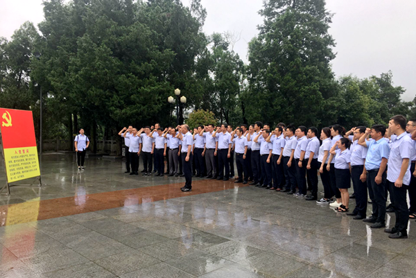下午,大家冒著細(xì)雨來(lái)到金寨縣紅軍廣場(chǎng),向革命烈士敬獻(xiàn)了花籃。在巍峨的革命烈士紀(jì)念塔下,面對(duì)鮮艷的黨旗,公司黨委委員、總工程師彭申凱帶領(lǐng)全體黨員一起重溫了入黨誓詞。