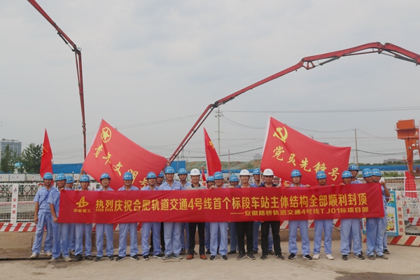 合肥軌道交通4號線首個標段內(nèi)車站主體結構全部順利封頂