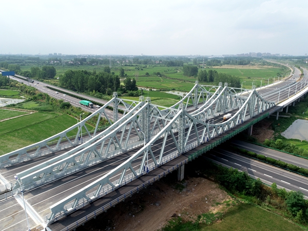 該項目是滁州市與來安縣的連接線,道路標(biāo)準(zhǔn)定位為城市快速路。自項目建設(shè)以來,項目部緊盯時間節(jié)點(diǎn)目標(biāo),嚴(yán)控施工質(zhì)量,精心部署推進(jìn)施工。過程中,項目部科學(xué)調(diào)度,提前謀劃,有效克服了雨季洪災(zāi)、新冠肺炎疫情等困難帶來的不利影響。在不中斷高速交通的情況下,成功運(yùn)用縱向前移結(jié)合橫向平移多點(diǎn)牽引式頂推施工技術(shù),順利完成了鋼桁架梁安裝,積累了頂推施工的寶貴經(jīng)驗。