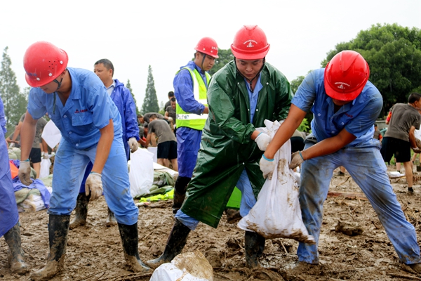 7月23日,路面公司組建的防汛抗洪搶險救援隊在完成同大圩保衛(wèi)戰(zhàn)后,又快速集結(jié)隊伍,冒雨逆行,轉(zhuǎn)戰(zhàn)增援紫荊村小南河抗洪搶險,和正在參與抗洪搶險的解放軍官兵共同投入戰(zhàn)斗。連續(xù)6小時的冒雨奮戰(zhàn),共填裝轉(zhuǎn)運沙袋5000多只,成功完成強固堤壩任務(wù),比預(yù)定時間提前了近兩小時。