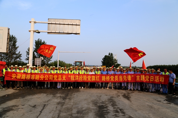 在這場(chǎng)抗洪搶險(xiǎn)突擊中,市政分公司黨總支現(xiàn)場(chǎng)組織開展了一次主題為“抗洪搶險(xiǎn)黨旗紅 路橋黨員當(dāng)先鋒”的黨日活動(dòng),號(hào)召所屬黨支部和廣大黨員堅(jiān)守陣地,把黨組織的戰(zhàn)斗堡壘建在抗洪搶險(xiǎn)的最前沿。