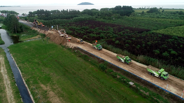 24日,環(huán)巢湖大道杭埠河堤壩上一片忙碌,路橋的抗洪尖兵們要和不斷上漲的湖水搶時(shí)間。從23日凌晨1時(shí)到24日17時(shí),經(jīng)過(guò)40多個(gè)小時(shí)的連續(xù)作業(yè),安徽路橋順利完成道路抬升任務(wù),基本具備通行條件。但是為進(jìn)一步提高通行舒適性和道路、堤壩耐久性,突擊隊(duì)伍繼續(xù)戰(zhàn)斗,開始道路水穩(wěn)施工。
