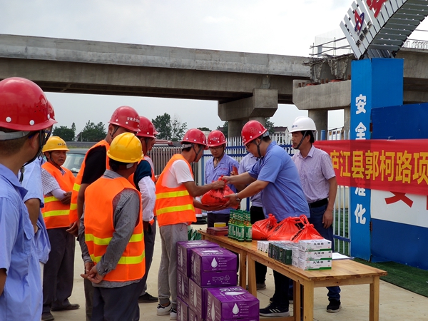 項(xiàng)目積極組織開展“消除事故隱患,筑牢安全防線”主題安全月活動(dòng),組織員工和一線作業(yè)人員觀看安全微電影,學(xué)習(xí)安全防護(hù)常識(shí),提高安全防護(hù)意識(shí)。結(jié)合項(xiàng)目實(shí)際開展交通傷害應(yīng)急演練,帶領(lǐng)一線作業(yè)人員學(xué)習(xí)交通傷害后的應(yīng)急操作,提高一線作業(yè)人員應(yīng)急知識(shí)儲(chǔ)備,提高應(yīng)急處置能力。高溫天氣來(lái)襲,項(xiàng)目每天向一線作業(yè)人員發(fā)放十滴水、藿香正氣液等防暑降溫藥品和綠豆、白糖、礦泉水等防暑降溫物資,保障安全生產(chǎn),為大干快上保駕護(hù)航。