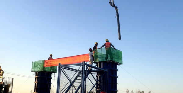 池河大橋作為項(xiàng)目控制性工程,橋梁全長(zhǎng)550米,原定計(jì)劃搭設(shè)漫水橋作為便橋。受7月份連續(xù)強(qiáng)降雨影響,池河水位全面上漲,無法進(jìn)行漫水橋施工,且河兩岸均為軟基,對(duì)樁基施工影響極大。項(xiàng)目及時(shí)調(diào)整思路,創(chuàng)造條件,調(diào)集路基隊(duì)伍搶修池河大橋段便道,從兩頭向中間推進(jìn),借助部分村村通公路,有效保障了施工機(jī)械和罐車通行。為確保鋼筋籠制作進(jìn)度,對(duì)樁徑和樁長(zhǎng)一致的部分優(yōu)先施工。截至10月10日,池河大橋施工已累計(jì)完成93%,目前已轉(zhuǎn)入橋梁承臺(tái)及墩柱施工階段。