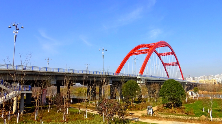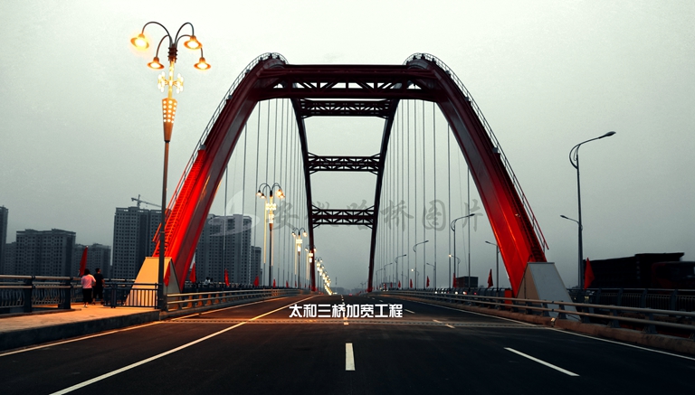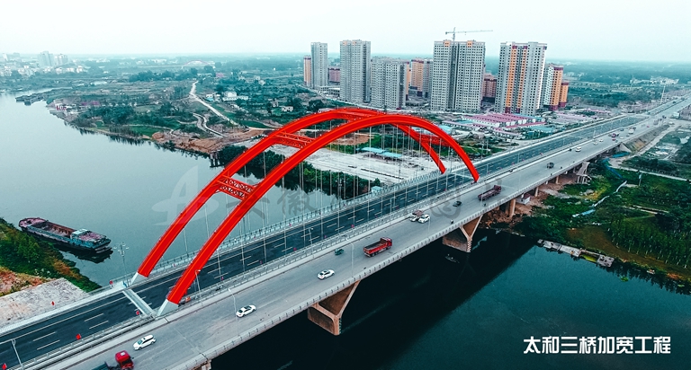 105國道(三角元至太和段)太和潁河三橋加寬工程于2015年8月開工,2017年7月順利交工。橋梁全長576.53米,主橋全寬23.2米,引橋全寬19.5m,主跨為152米下承式鋼管砼系桿拱橋,引橋?yàn)?0m箱梁結(jié)構(gòu),下部結(jié)構(gòu)采用柱式墩,鉆孔灌注樁基礎(chǔ),設(shè)計(jì)荷載等級為公路-I級。該項(xiàng)目建成通車以來,有效改善了太和縣城潁河兩岸的交通狀況,對加快城鎮(zhèn)化建設(shè)起到了重要作用。