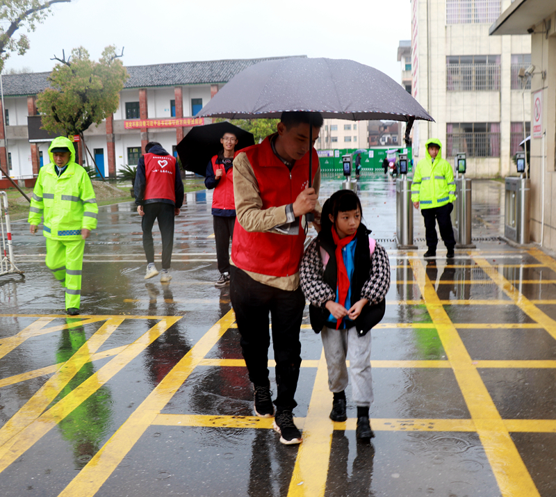 為切實做好當地校園及周邊的交通安全保障工作,今年以來,安徽路橋道路分公司江西吉康改擴建C1標、上饒東樞紐互通項目和省內G318廣德項目“一路”志愿者服務隊主動聯(lián)合當地交警持續(xù)開展“護苗”行動,為學生出行撐起一把“平安傘”,為蜂擁而至的學生們開辟一條“綠色通道”。逢陰雨天氣時,志愿者們紛紛為孩子們撐起雨傘,一個個將他們送過馬路或帶到家長身邊才放下心來,并引導青少年學習正確的交通安全規(guī)范,構成了一道道亮麗的“紅色”風景。