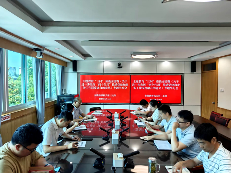 6月16日下午,安徽路橋機(jī)關(guān)第三黨支部召開(kāi)主題教育“三問(wèn)” 座談交流。