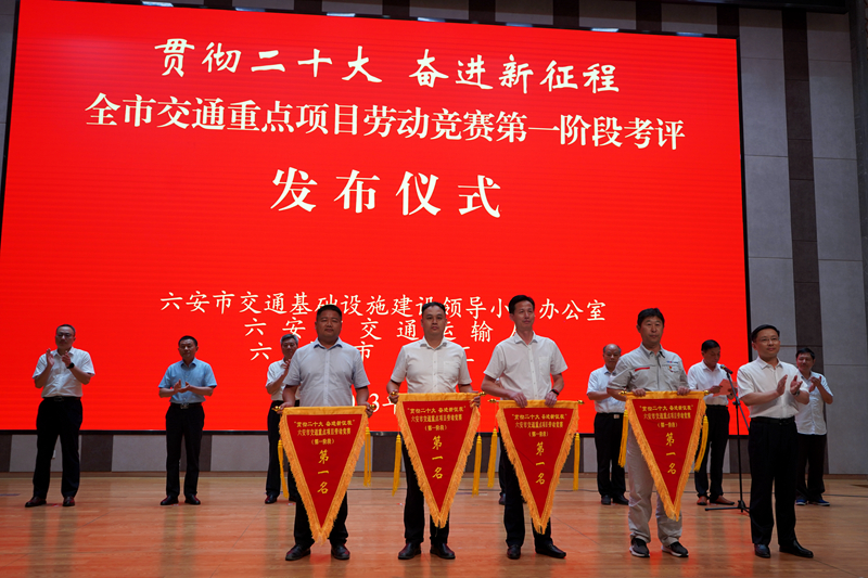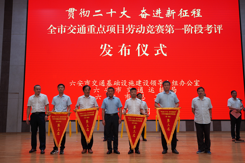 7月15日,在六安市交通運輸基礎(chǔ)設(shè)施領(lǐng)導(dǎo)小組辦公室、市交通運輸局、市總工會聯(lián)合舉行的“貫徹二十大 奮進新征程”全市交通重點項目勞動競賽第一階段考評發(fā)布儀式上,公司承建的六安G237一期項目榮獲國省干線公路項目第一名、霍邱縣彭塔至潘集段建設(shè)工程榮獲第三名。