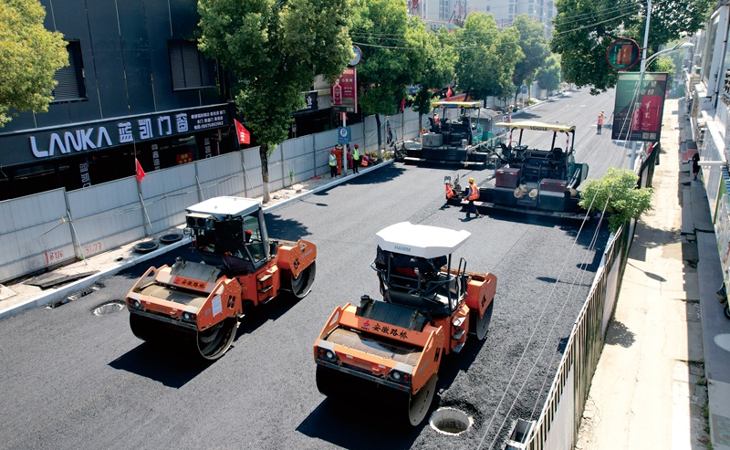 項(xiàng)目部提前組織謀劃成立勞動(dòng)競(jìng)賽領(lǐng)導(dǎo)小組,于5月10日順利舉行“三號(hào)聯(lián)創(chuàng)”暨勞動(dòng)競(jìng)賽啟動(dòng)儀式,牢固樹(shù)立“工期就是效益”的理念,快速掀起大干快干熱潮。從正式開(kāi)工時(shí)的道路破除到路基施工階段的碎石、灰土施工再到現(xiàn)階段的水穩(wěn)、瀝青攤鋪,施工人員日夜堅(jiān)守,鎖定年度產(chǎn)值目標(biāo),優(yōu)化施工方案,科學(xué)倒排工期,強(qiáng)化資源協(xié)同,時(shí)刻把勞動(dòng)競(jìng)賽的使命任務(wù)記在心里、扛在肩上。截至目前,項(xiàng)目玉泉路一期和新蓼大道一期工程分別于六月中旬和七月下旬完成瀝青攤鋪等全部施工任務(wù),較原計(jì)劃放行時(shí)間分別提前了3個(gè)月和2個(gè)月。在此基礎(chǔ)上,項(xiàng)目部以點(diǎn)帶面,連線成環(huán),先后完成了水門(mén)塘路西段路基、路面施工、育才路管道施工以及蓼中路、蓼東大道等路段前期征遷放線工作。項(xiàng)目工程進(jìn)度成效顯著,得到了《皖西日?qǐng)?bào)》《六安新周報(bào)》等六安地區(qū)主流媒體的關(guān)注,展現(xiàn)了項(xiàng)目?jī)?yōu)質(zhì)的服務(wù)和良好的形象。