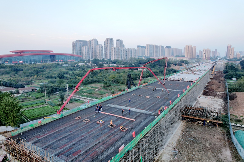 百日攻堅大會戰(zhàn)|信陽新十一大道項目主線橋梁全線貫通 發(fā)布時間:2023年10月16日 來源:橋梁分公司 發(fā)布人:黨委工作部 作者:章香國 瀏覽:4342次 10月13日晚,信陽新十一大道項目順利完成主線橋梁最后一聯(lián)箱梁頂板混凝土完成澆筑,標志著主線橋梁全線貫通,向著奮力沖刺四季度、實現(xiàn)年內(nèi)建成通車目標邁出了堅實一步。