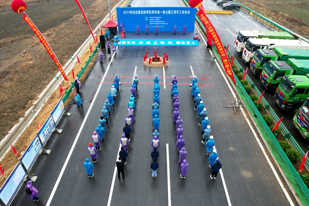 12月13日上午,S311懷遠(yuǎn)包集至蚌埠民用機場一級公路工程項目舉行開工動員會。蚌埠市交通運輸局黨委書記、局長戴勇出席儀式并宣布項目開工,蚌埠市交通運輸局黨委委員、副局長王光銀主持儀式,公司黨委書記、董事長錢申春應(yīng)邀出席并代表參建單位發(fā)言。蚌埠市交通運輸局黨委委員、公路管理服務(wù)中心主任王殿利,蚌埠市機場建設(shè)投資有限公司黨委委員、副總經(jīng)理徐凱,懷遠(yuǎn)縣副縣長趙樹建、王沖參加動員會。