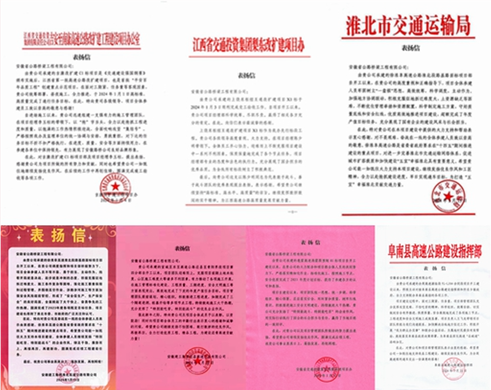 近日,公司多個高速公路重點項目收到屬地主管部門、業(yè)主單位的來信表揚。