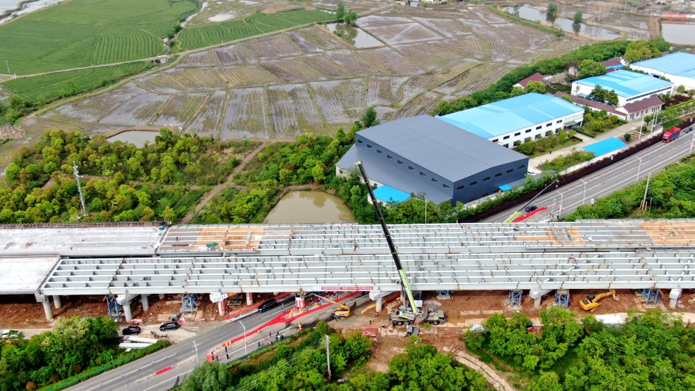 S330分離立交橋總長(zhǎng)543米,其中鋼板組合梁長(zhǎng)185米,上跨S330省道,采用節(jié)段吊裝施工方案,共分100個(gè)節(jié)段。自3月15日首片鋼板組合梁吊裝以來,項(xiàng)目部克服連續(xù)降雨、車流量大等不利因素,迎難而上,精心組織,安全穩(wěn)步推進(jìn)梁板架設(shè)工作,歷經(jīng)35天完成全部鋼板組合梁吊裝。