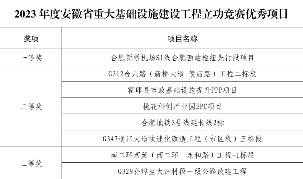 近日,安徽省住房和城鄉(xiāng)建設(shè)廳與安徽省總工會(huì)對(duì)2023年度以“六比六賽”為主要內(nèi)容的安徽省重大基礎(chǔ)設(shè)施建設(shè)工程立功競(jìng)賽參賽項(xiàng)目進(jìn)行了通報(bào)表?yè)P(yáng),公司多個(gè)項(xiàng)目獲得優(yōu)秀項(xiàng)目稱號(hào)。其中合肥新橋機(jī)場(chǎng)S1線先行段項(xiàng)目獲一等獎(jiǎng);G312合六路2標(biāo)等5個(gè)項(xiàng)目獲二等獎(jiǎng);G329改建工程項(xiàng)目等2個(gè)項(xiàng)目獲三等獎(jiǎng)。