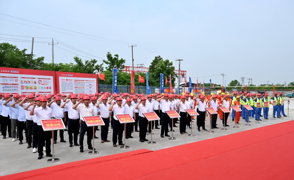 6月1日,安徽路橋2024年“安全生產(chǎn)月”啟動儀式暨起重傷害事故應急演練在淮桐高速合肥段2標順利舉辦。公司黨委書記、董事長錢申春作動員部署講話,并帶領全體人員集中進行安全宣誓。公司領導班子成員、機關各部門負責人和分子公司黨政主要負責同志,部分項目負責人、安全部負責人及工友代表等共計130余人參加啟動儀式。