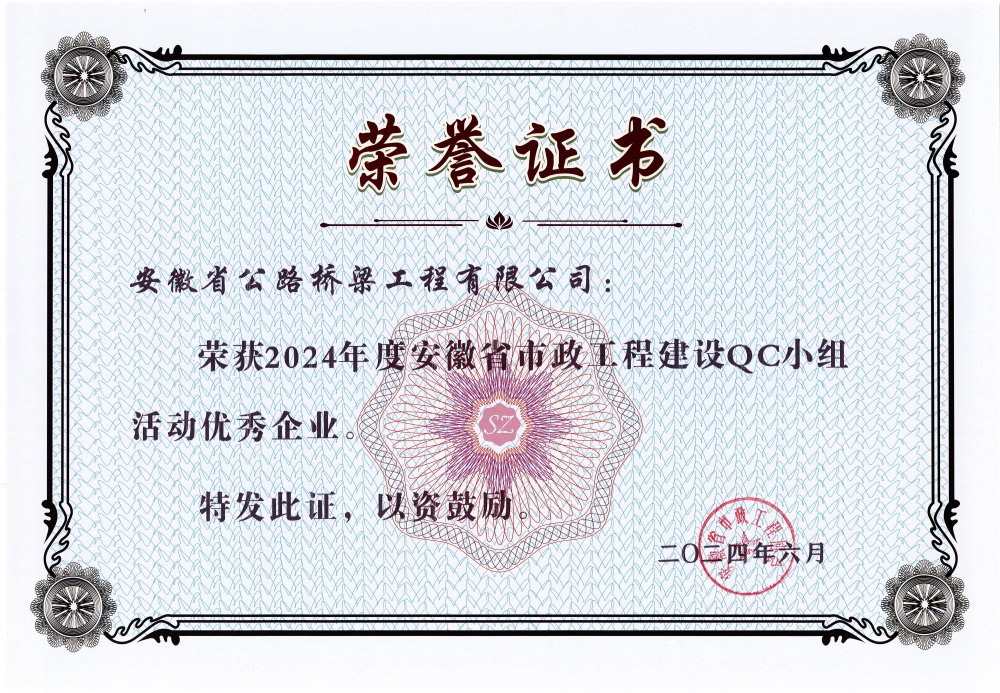 公司多項(xiàng)QC課題獲2024年度安徽省市政工程建設(shè)優(yōu)秀QC成果獎(jiǎng)