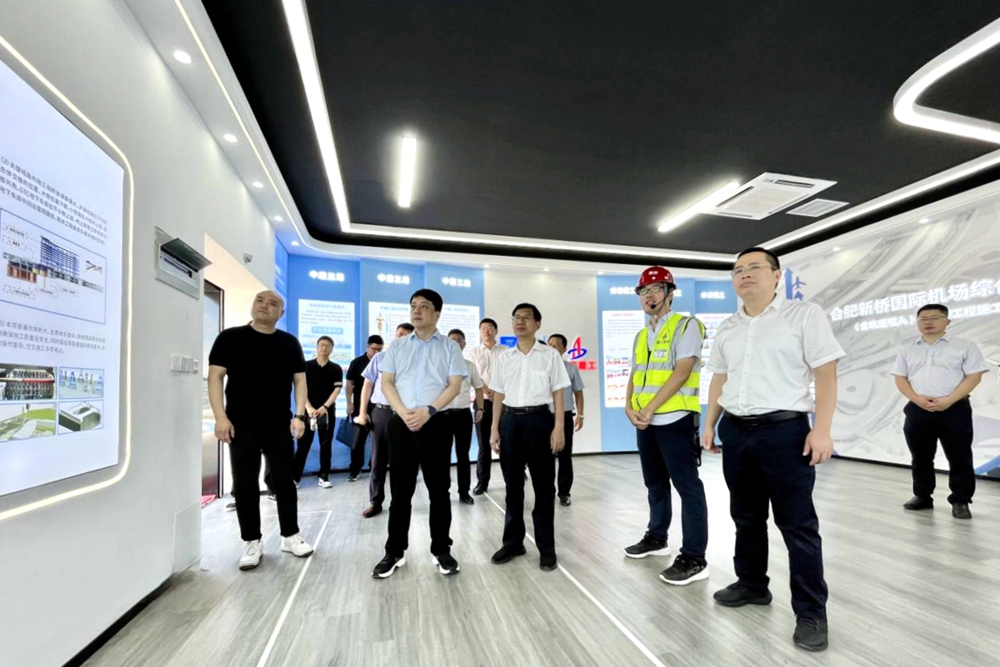 7月25日,安徽省住房和城鄉(xiāng)建設廳工程質量安全監(jiān)管處副處長黃峰帶隊赴公司承建的合肥新橋國際機場綜合交通中心項目調研智慧工地應用情況,并就中國建造(安徽)工業(yè)互聯網平臺建設征求意見建議。集團黨委委員、副總經理陳仁虎熱情接待了黃峰一行。