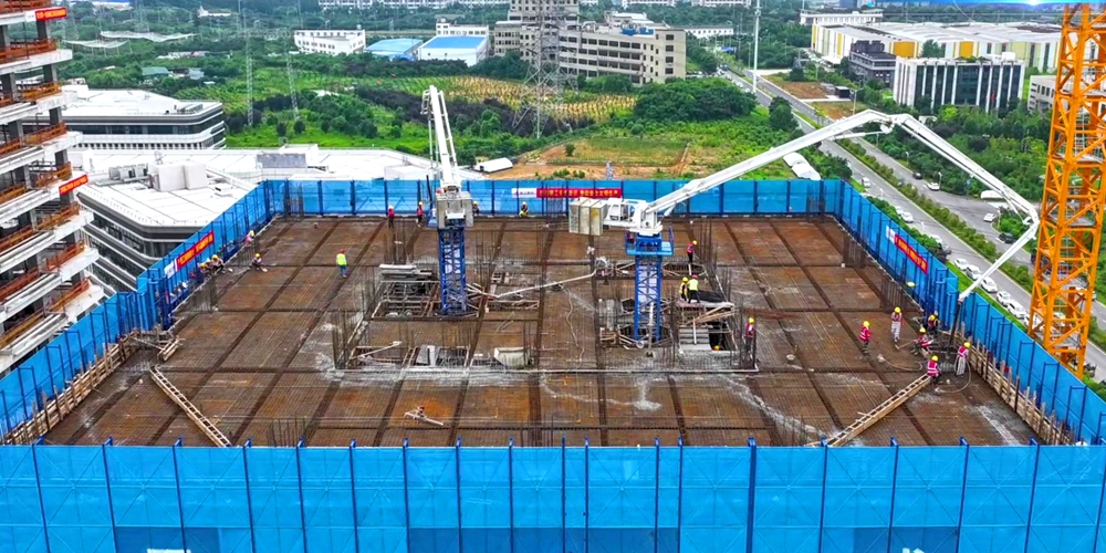 夏日炎炎,在合肥桃花科創(chuàng)產(chǎn)業(yè)園項目超高層建筑施工現(xiàn)場,超高層360°混凝土全自動液壓智能布料機(jī)器人卻“不懼”酷暑,揮舞著“長臂”大顯身手。