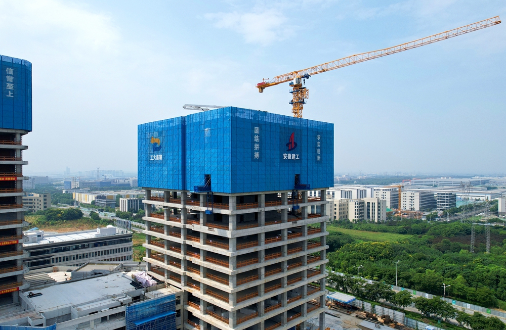 桃花科創(chuàng)產(chǎn)業(yè)園項(xiàng)目A1#樓,是公司承建的首個(gè)超高層建筑,地上29層、地下2層,總建筑面積5.4萬平方米,建設(shè)高度129.6米,建成后將成為包含辦公、商業(yè)、酒店的商業(yè)綜合體。建設(shè)過程中,項(xiàng)目采用智能布料機(jī)及附著式升降腳手架等新工藝新技術(shù),實(shí)現(xiàn)6天一個(gè)標(biāo)準(zhǔn)層的建設(shè)新速度,步入“快增長”時(shí)期。