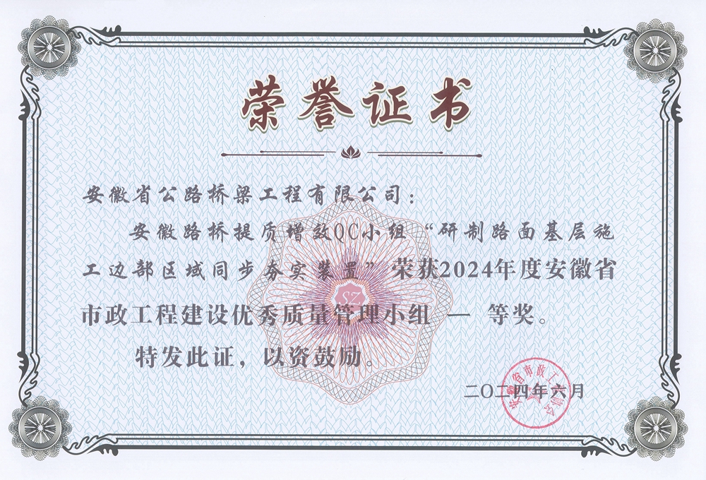 堅(jiān)持抓創(chuàng)新從施工生產(chǎn)重難點(diǎn)出發(fā),分公司擬定了27項(xiàng)科研課題,下發(fā)了《2024年度科技創(chuàng)新成果指標(biāo)》,并針對(duì)預(yù)制箱梁施工質(zhì)量及路面基層壓實(shí)質(zhì)量控制等課題,成立了6個(gè)QC小組,獲評(píng)“安徽省市政工程協(xié)會(huì)”及“安徽省建設(shè)工程質(zhì)量與安全協(xié)會(huì)”QC成果一等獎(jiǎng)3項(xiàng),二、三等獎(jiǎng)5項(xiàng)。鼓勵(lì)基層項(xiàng)目開(kāi)展提升功效類(lèi)小發(fā)明、小創(chuàng)造、小革新、小設(shè)計(jì)、小建議,今年以來(lái),分公司順利獲評(píng)實(shí)用新型發(fā)明專(zhuān)利20余項(xiàng),征集“合理化建議”30余條。