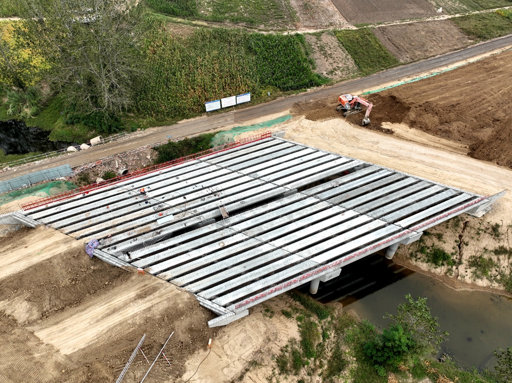 隨著最后一片梁板精準落位,徐淮阜高速亳州段路基02標主線橋梁板架設任務順利完成,項目主線橋全面進入橋面系及護欄施工階段。