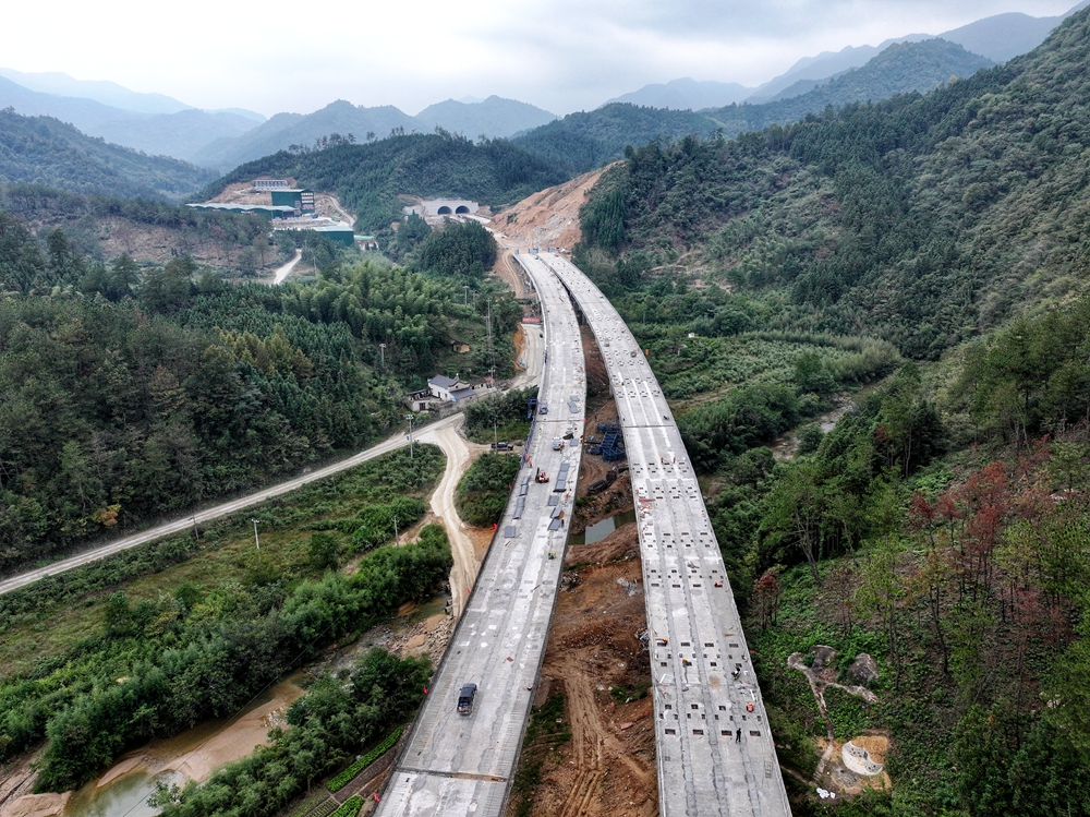 “項(xiàng)目建設(shè)過(guò)程中最大的挑戰(zhàn)就是皖南山區(qū)復(fù)雜的地形地貌。”涇青高速路基路面標(biāo)技術(shù)負(fù)責(zé)人袁寶軍告訴記者,項(xiàng)目團(tuán)隊(duì)通過(guò)科學(xué)規(guī)劃、精準(zhǔn)施策,對(duì)施工現(xiàn)場(chǎng)進(jìn)行了全面細(xì)致的勘查與分析,制定了詳細(xì)的施工計(jì)劃和進(jìn)度安排。在施工過(guò)程中,團(tuán)隊(duì)根據(jù)實(shí)際情況及時(shí)調(diào)整方案,優(yōu)化資源配置,確保每一道工序都能高效有序推進(jìn)。目前,項(xiàng)目的控制性工程鳳形山隧道、合溪隧道均已實(shí)現(xiàn)雙線貫通,碧山隧道掘進(jìn)完成83.5%、梁板架設(shè)完成65%,路基施工完成80%左右。按照計(jì)劃,路基主體施工將在明年3月份完成。