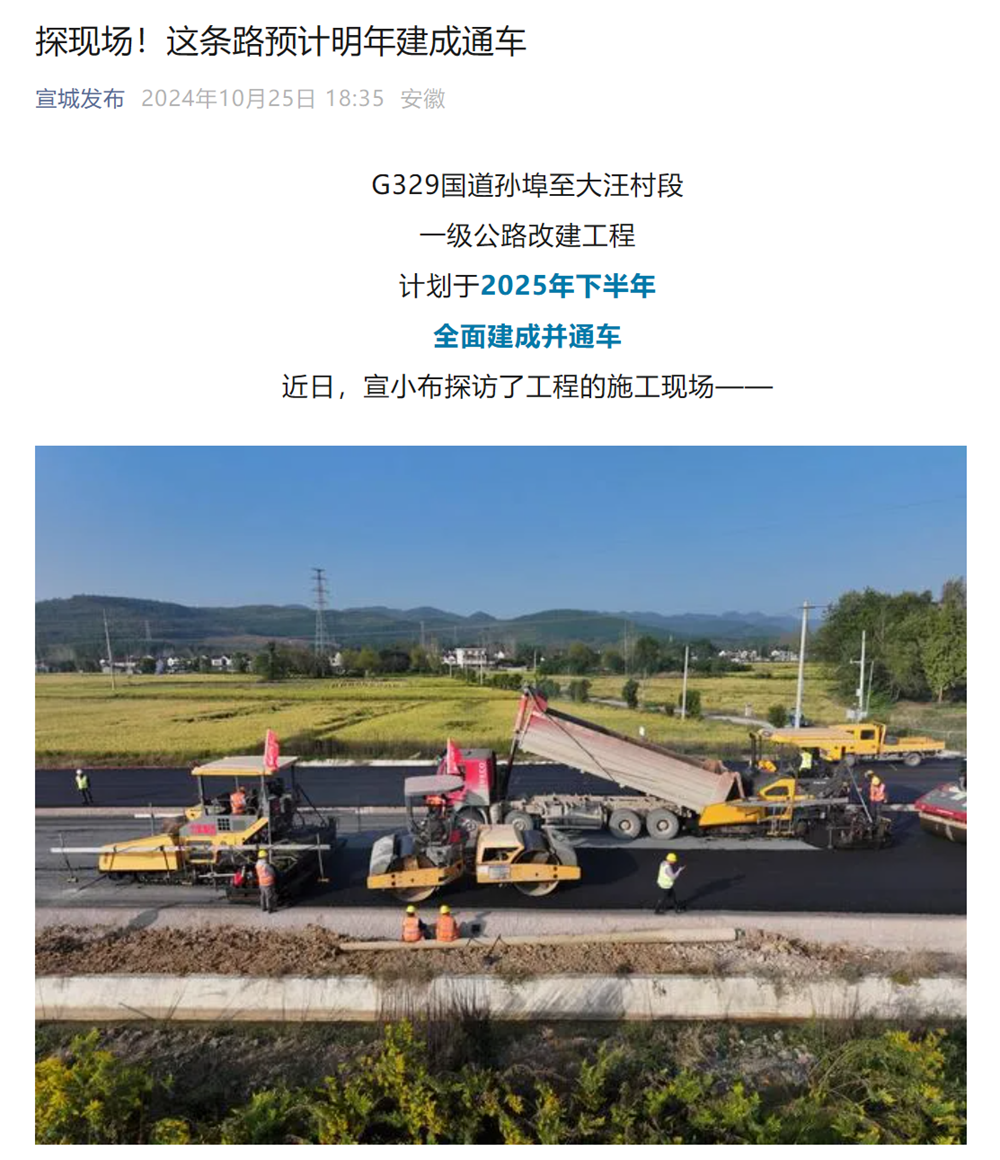 10月25日,《宣城發(fā)布》對G329改建工程項目建設(shè)情況進(jìn)行了報道。