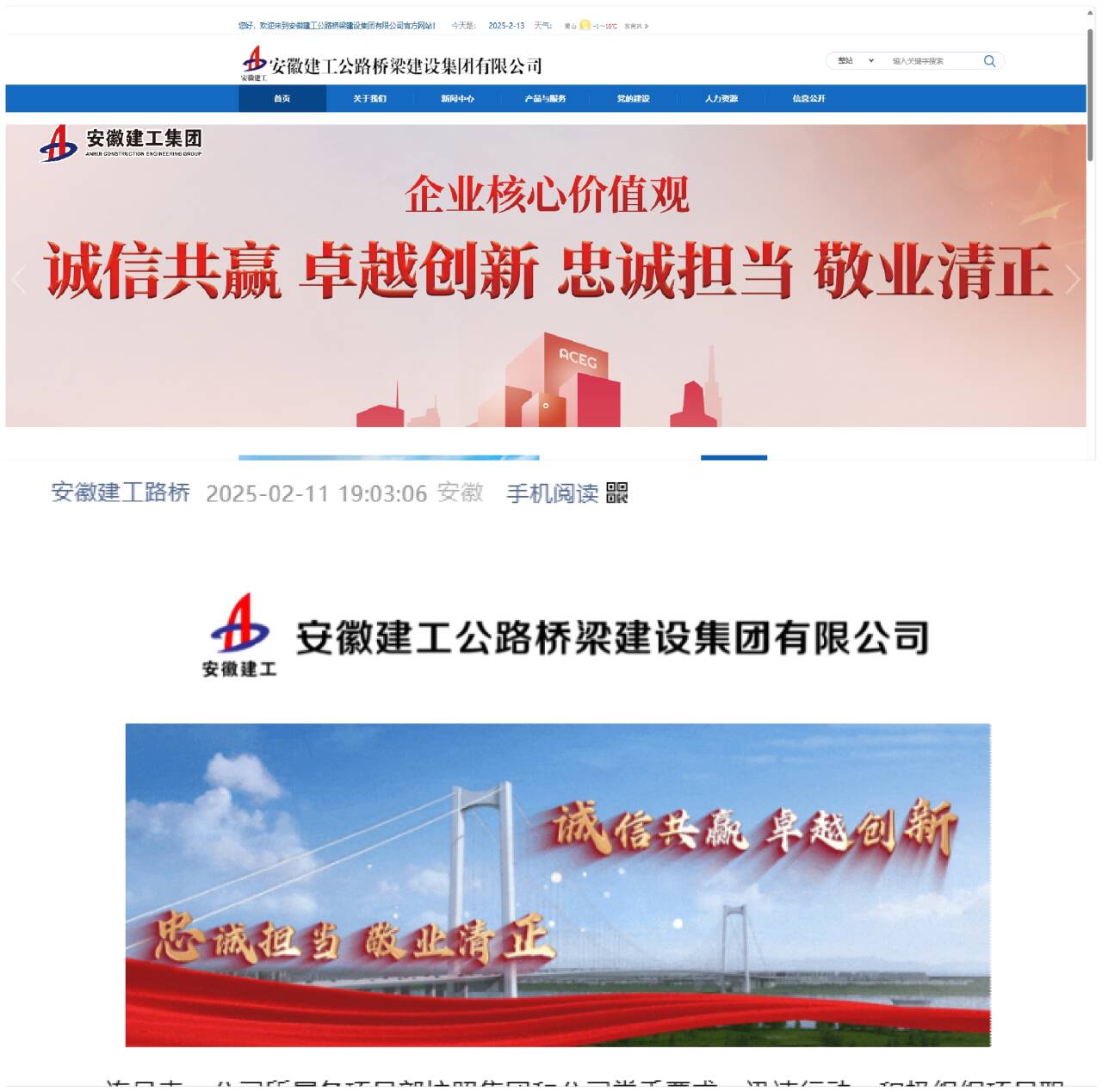 建工路橋黨委高度重視集團(tuán)核心價(jià)值觀學(xué)習(xí)宣傳貫徹工作,通過“三個(gè)迅速”舉措,掀起學(xué)習(xí)宣傳貫徹執(zhí)行熱潮。