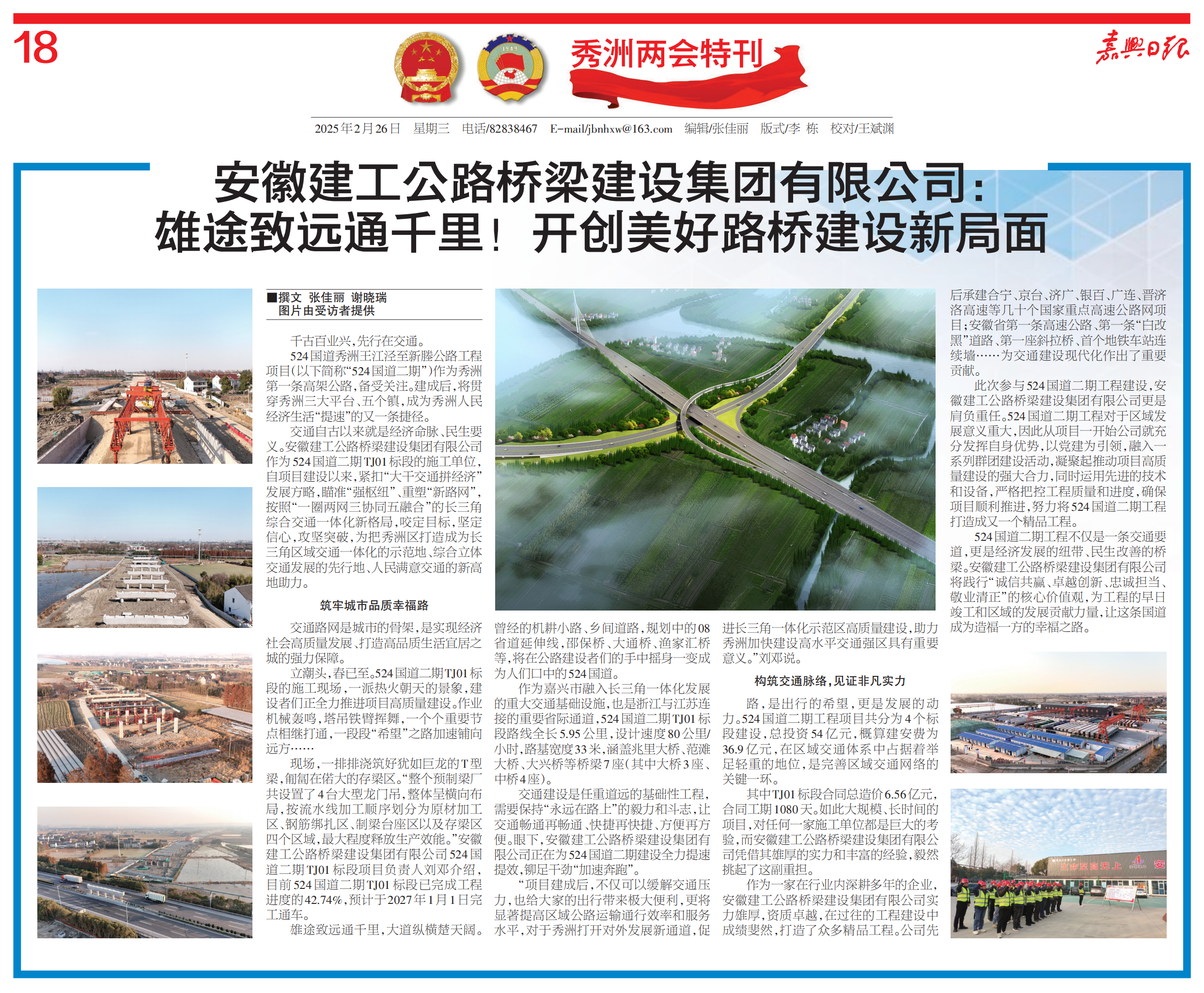 【名媒聚焦】嘉興日?qǐng)?bào):安徽建工公路橋梁建設(shè)集團(tuán)有限公司——雄途致遠(yuǎn)通大道!開創(chuàng)美好建工路橋建設(shè)新局面