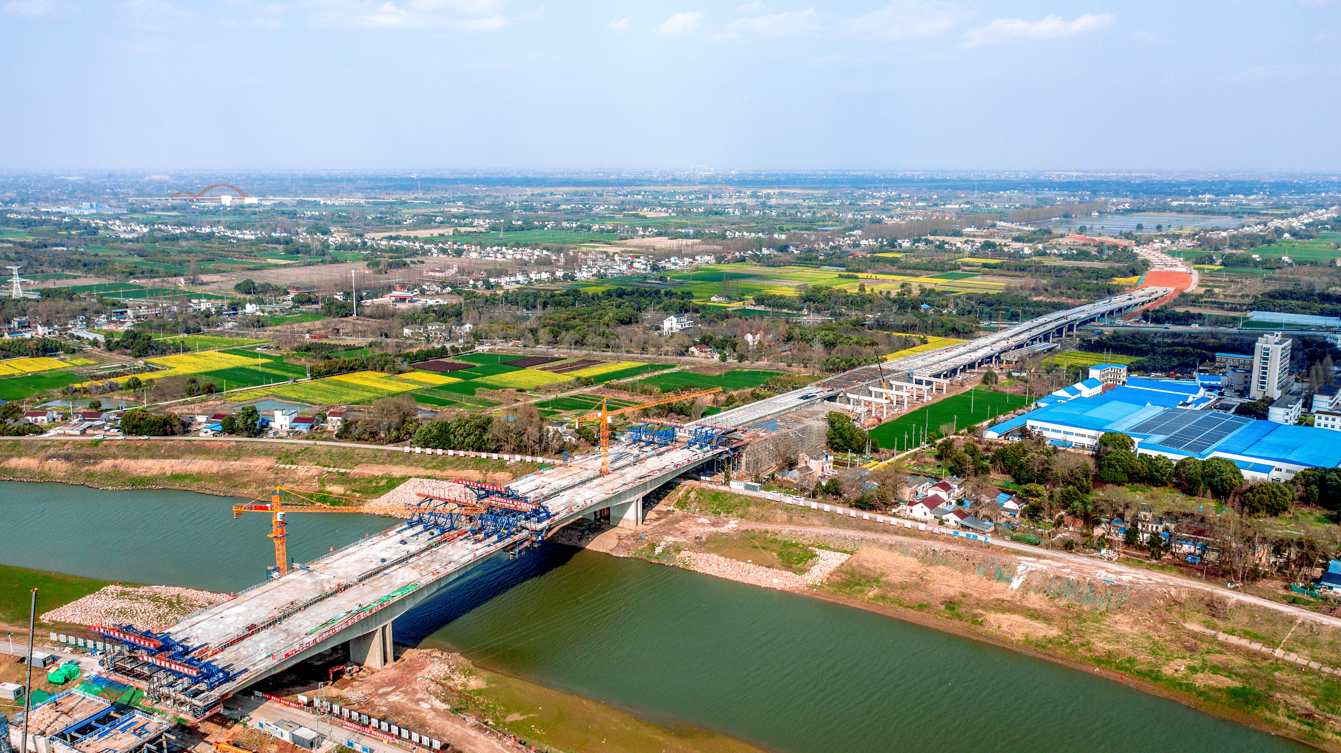 在蕪湖青弋江畔,S334峨山路東延伸新建二期工程青弋江特大橋東引橋左幅已順利貫通,主橋現(xiàn)澆施工緊鑼密鼓推進,確保如期實現(xiàn)4月份主橋合龍和年底主線貫通目標。