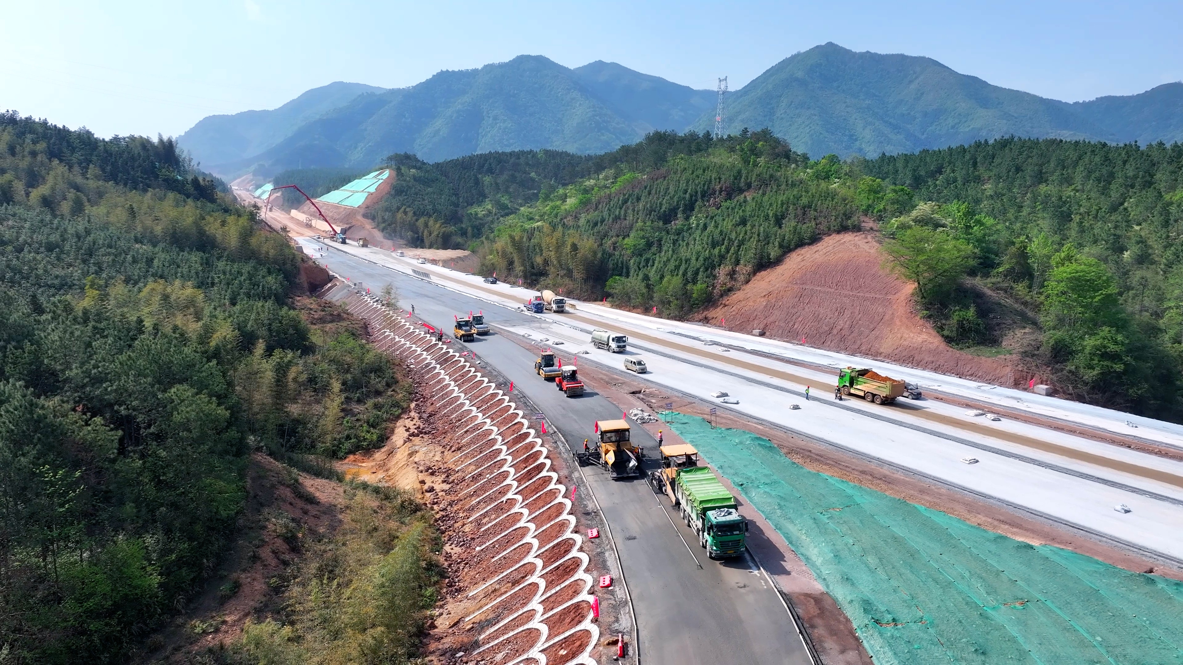 長三角大地上,處處閃爍著奮斗者的身影。在皖南的群山間,機(jī)械轟鳴,涇青高速的建設(shè)者們正進(jìn)行水穩(wěn)攤鋪。安徽建工路橋涇青高速路基路面標(biāo)項目經(jīng)理部黨支部副書記丁自亮介紹,當(dāng)前涇青高速04標(biāo)項目鳳形莊隧道、合溪隧道、碧山隧道主體工程已全部完成、橋面系及主線路基已基本完成,路面水穩(wěn)底基層完成39%,水穩(wěn)基層完成37%,“計劃5月中旬進(jìn)行瀝青施工?!?/p>