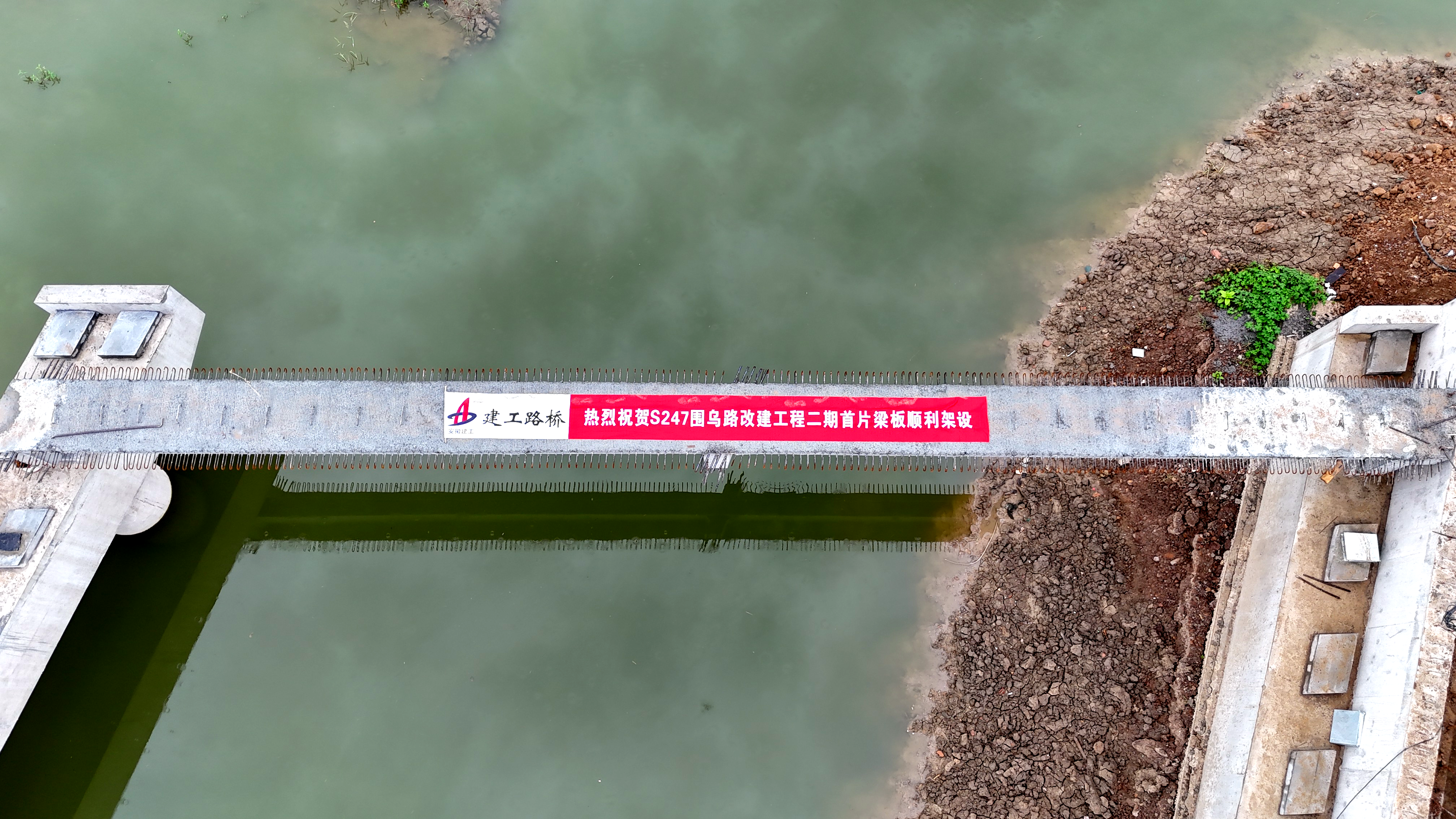 【路橋“競”行時】S247改建二期項目首片T梁順利架設(shè)