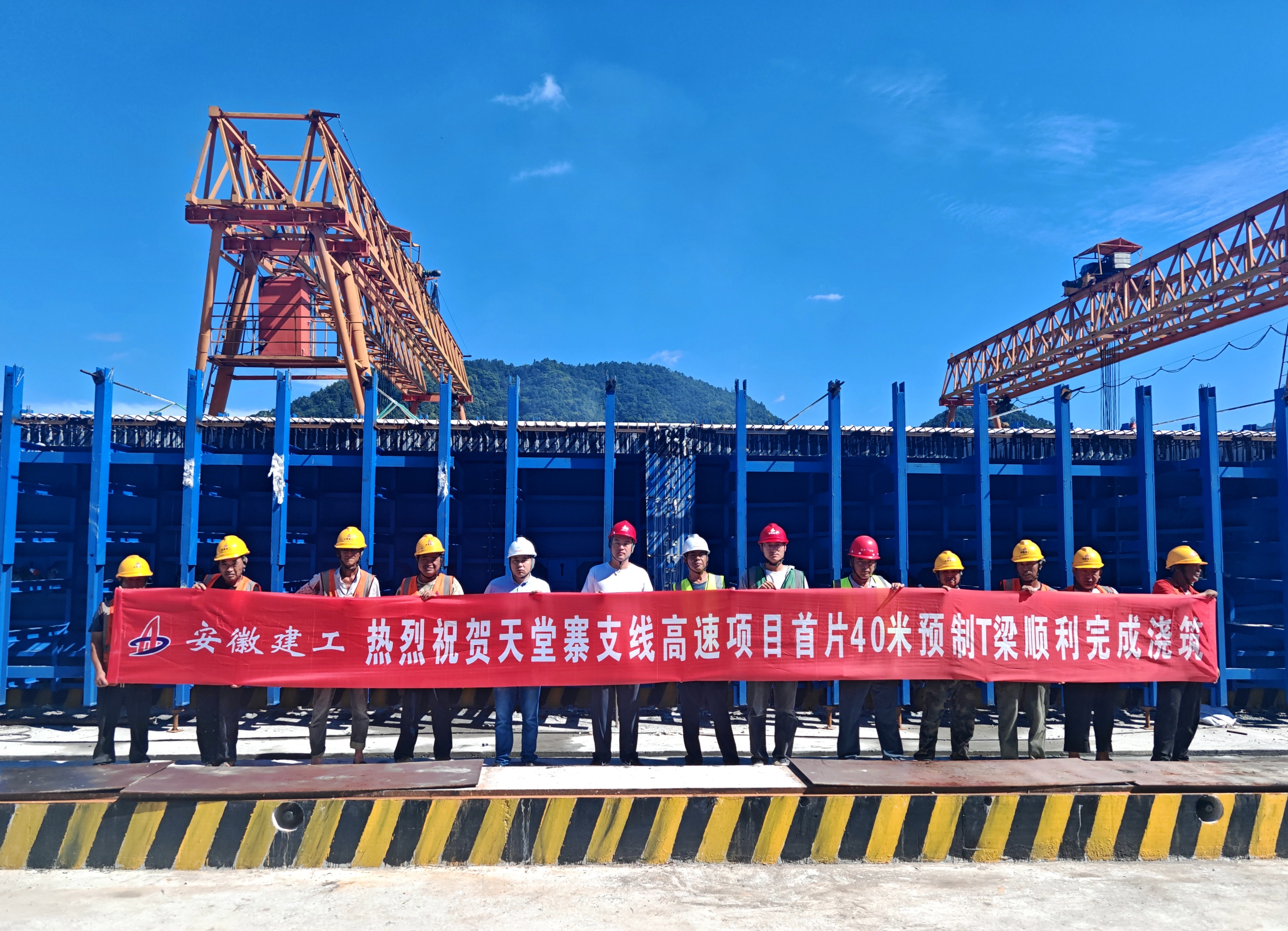【路橋“競”行時(shí)】天堂寨支線高速項(xiàng)目首片預(yù)制T梁成功澆筑
