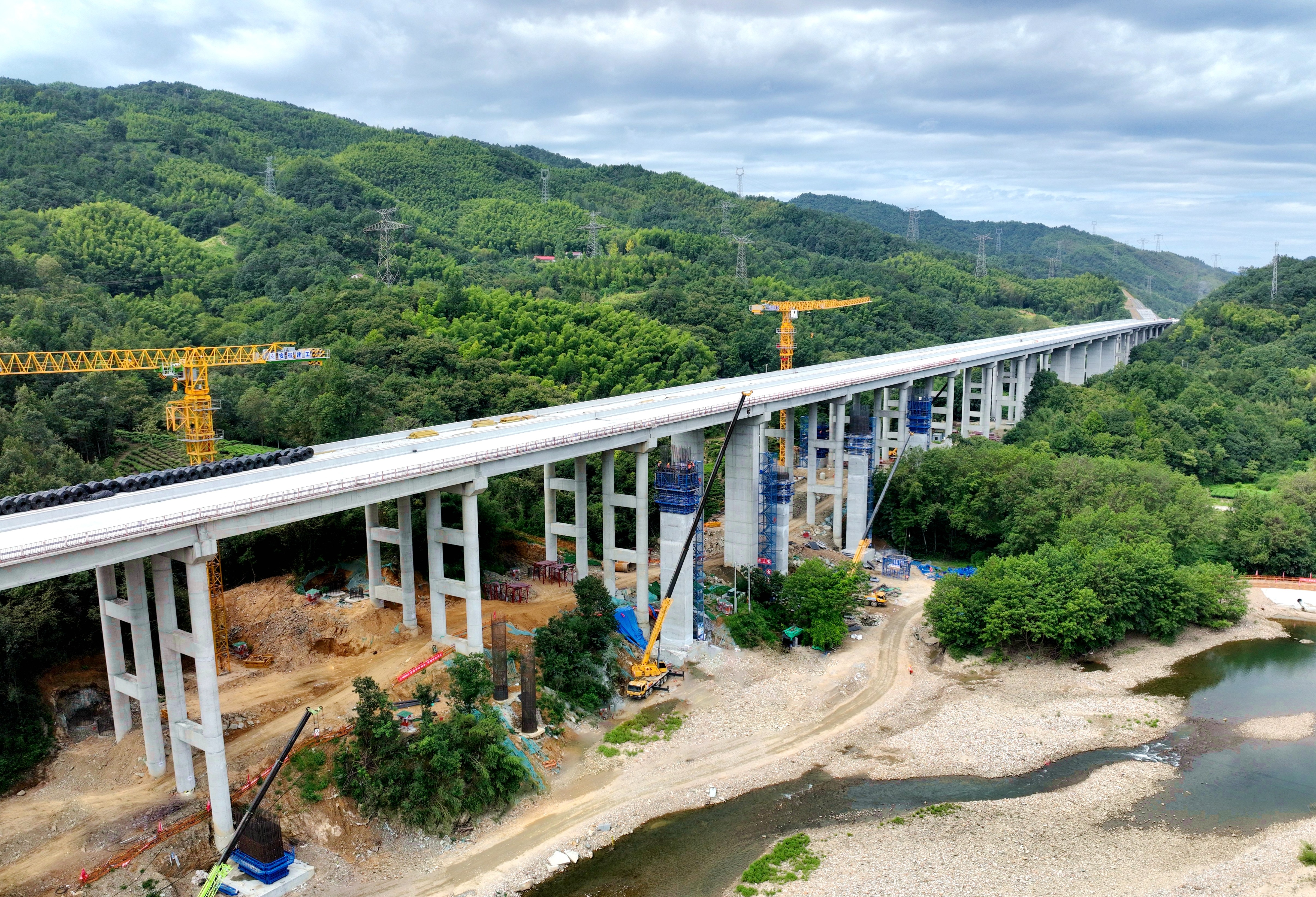 橋梁拼寬就像一場難度極高的“心臟搭橋手術”,安全風險高、工期壓力大。項目團隊通過優(yōu)化施工組織設計,增加班組和機械設備投入,根據(jù)實際情況調整施工工序,采用平行作業(yè)與交叉作業(yè)相結合的方式,克服橋址區(qū)軟基地質、便道貫通難度大、雨季施工等困難,有效提高施工效率。9月3日,項目率先完成全線首個空心薄壁墩封頂,30多米高的墩柱如巨人手臂般破土而出。目前,樁基工程澆筑144根,完成墩柱28根,承臺17座,預制T梁3片,預計10月底前完成拼寬橋梁板架設。