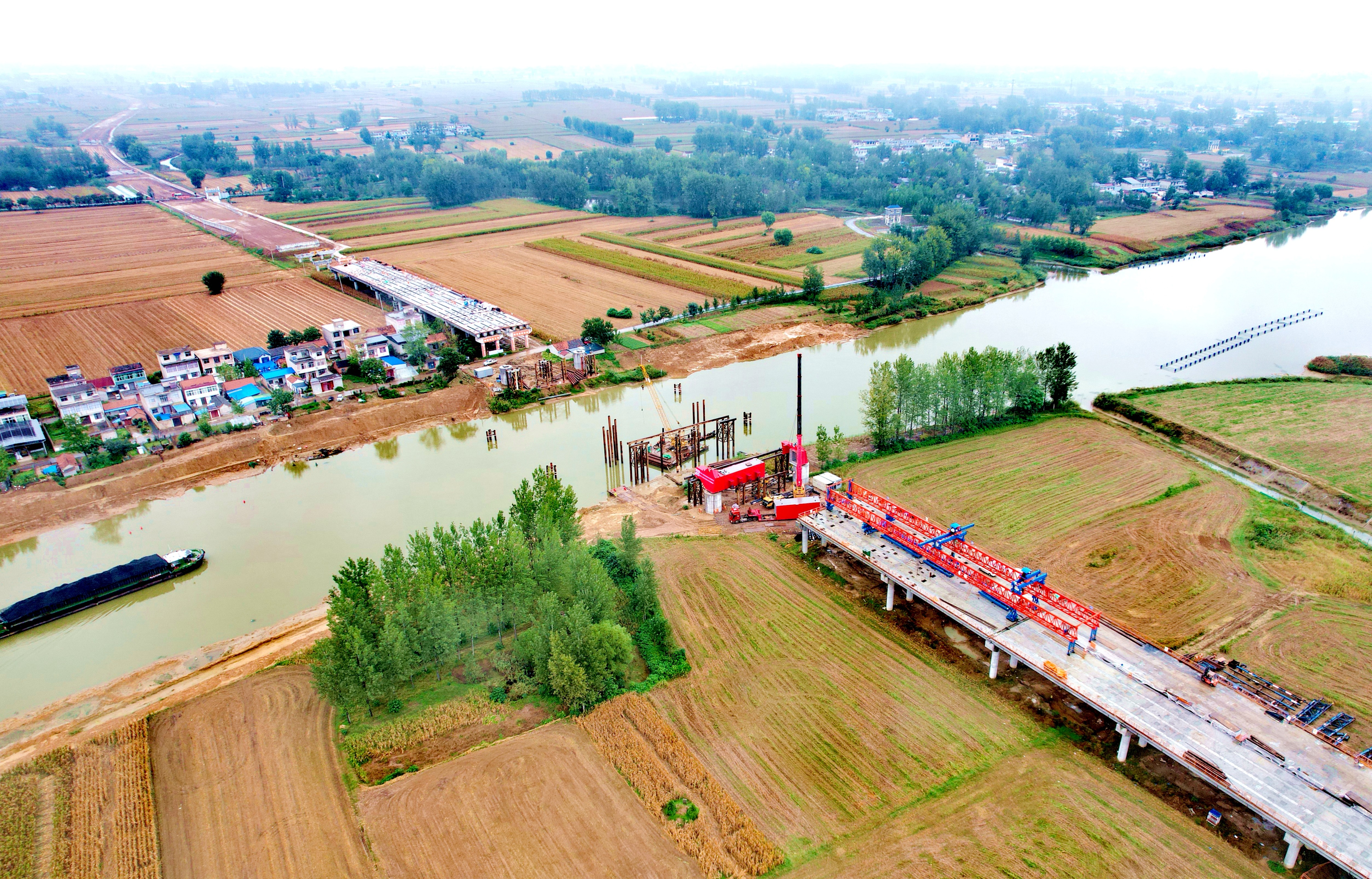 【路橋“競”行時】S235濉唐路三期項目澮河大橋完成首片鋼箱梁架設(shè)