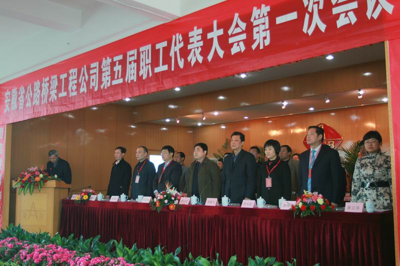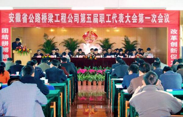 8:45,在莊嚴的國歌聲中,第五屆職工代表大會第一次會議正式開幕。公司總經理汪衛(wèi)東向大會作了題為《統(tǒng)一思想 堅定信心 為實現(xiàn)安徽路橋的新崛起而奮斗》的工作報告。汪總在報告中指出,這次會議,是在當前國家擴大內需、加大基礎設施建設的特殊環(huán)境下,是在集團公司對當前經濟形勢科學研判和正確部署下,是在路橋公司謀求新崛起的關鍵時刻召開的一次十分重要的會議。