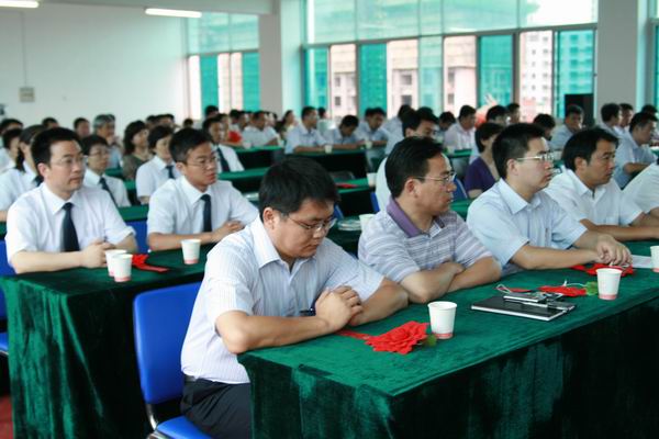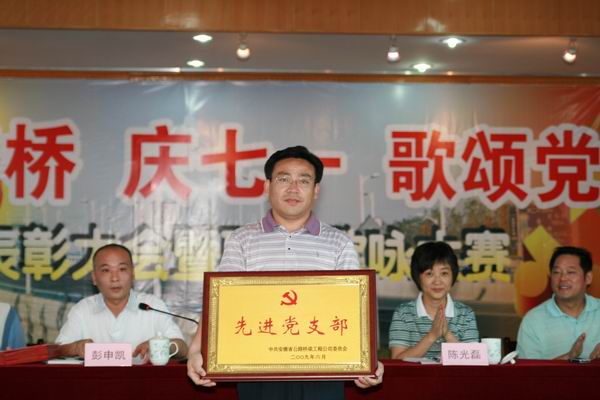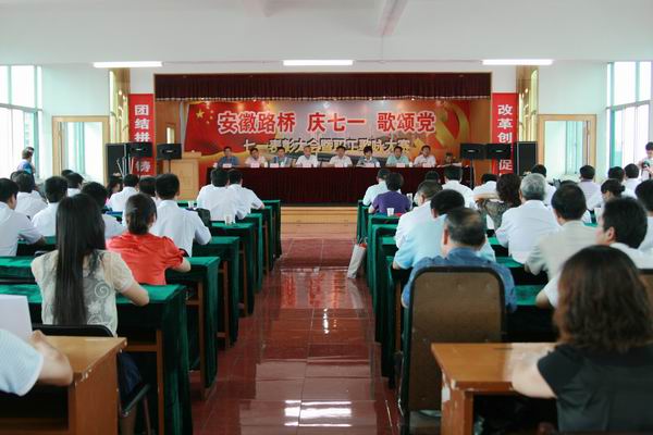 會議在雄壯的《國際歌》聲中開始。黨委書記陳光磊作了《牢記宗旨、珍惜榮譽、勇往直前》激情洋溢的講話。她說:今天我們大家在此歡聚一堂,紀念我們偉大的中國共產(chǎn)黨成立88周年,并對公司2008年度的先進基層黨組織和優(yōu)秀黨員、黨務(wù)工作者進行集中表彰。這是一個喜慶的日子,也是一個值得紀念的日子。在此,我謹代表公司黨委對所受表彰的先進單位和個人表示熱烈的祝賀,向公司所有的黨員表示崇高的敬意。接著她深情回顧了黨的光輝歷程,同時要求我們也應(yīng)該更加自覺地牢記黨的宗旨,在自己的工作崗位上勤奮、踏實、敬業(yè)的工作,為黨徽增光,為黨旗添彩。隨后,陳書記對2008年的黨委工作進行了回顧總結(jié),并對2009年下半年就如何進一步加強黨的建設(shè),深入學(xué)習(xí)實踐落實科學(xué)發(fā)展觀,更好地發(fā)揮黨組織的政治核心作用、戰(zhàn)斗堡壘作用和黨員的先鋒模范作用,提了幾點要求:一、繼續(xù)認真開展學(xué)習(xí)實踐科學(xué)發(fā)展觀活動,充分認清制約公司科學(xué)發(fā)展的問題,并有效整改,使公司走上科學(xué)發(fā)展的軌道;二、轉(zhuǎn)變觀念,找準黨建工作的“切入點”,積極主動的融入中心工作,充分發(fā)揮基層黨組織的戰(zhàn)斗堡壘作用;三、充分發(fā)揮共產(chǎn)黨員先鋒模范作用,增強號召力、凝聚力、戰(zhàn)斗力。最后,陳書記號召全體黨員把全部心思和精力集中到加快公司發(fā)展上,把各方面的力量凝聚到加快公司發(fā)展上,把共產(chǎn)黨人的先進性體現(xiàn)到加快公司發(fā)展上,以更加飽滿的熱情、更加務(wù)實的精神、更加積極的工作狀態(tài)投入到各項工作中去,團結(jié)帶領(lǐng)公司廣大員工,努力把握發(fā)展的大好機遇,為促進安徽路橋的穩(wěn)健發(fā)展做出新的貢獻。
