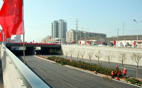 新蚌埠路與北二環(huán)路立交橋采取北二環(huán)路下穿新蚌埠路的路塹式結(jié)構(gòu),通過(guò)立交銜接,兩條路實(shí)現(xiàn)交通分流,成為北部城區(qū)的兩條快速通道。該項(xiàng)目自2008年9月開工以來(lái),積極響應(yīng)公司號(hào)召,發(fā)揚(yáng)“團(tuán)結(jié)拼搏、優(yōu)質(zhì)高效”的精神,趕進(jìn)度、保質(zhì)量、重安全,全體員工們團(tuán)結(jié)一致,艱苦奮斗,于2009年3月順利完成施工任務(wù),比原計(jì)劃工期提前了兩個(gè)多月,深受業(yè)主和社會(huì)各界的好評(píng)。該項(xiàng)目在施工過(guò)程中獲市重點(diǎn)局通報(bào)嘉獎(jiǎng),榮獲了建工集團(tuán)優(yōu)秀項(xiàng)目部、安全文明示范工地等稱號(hào),項(xiàng)目經(jīng)理李建成被評(píng)為建工集團(tuán)優(yōu)秀項(xiàng)目經(jīng)理,工程組被評(píng)為建工集團(tuán)先進(jìn)班組。