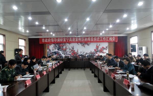 進(jìn)行現(xiàn)場了解之后,虞市長立即在孫埠鎮(zhèn)政府主持召開了相關(guān)工作會議。會議過程中,虞市長認(rèn)真聽取了孫埠鎮(zhèn)黨委史書記、鎮(zhèn)政府胡鎮(zhèn)長的工作匯報和我部項(xiàng)目經(jīng)理張慶書所作的有關(guān)施工進(jìn)展情況以及當(dāng)前面臨的重大客觀困難的情況介紹。隨后立即組織了討論解決問題的對策。虞市長指出:作為政府方面,宣城市交通局、宣州區(qū)政府以及孫埠鎮(zhèn)政府必須從宣城市大局發(fā)展的角度,提高認(rèn)識、明確責(zé)任、開通思路、多想辦法、強(qiáng)化措施,保證在月底前完成宣寧高速02標(biāo)段紅線內(nèi)房屋拆遷工作,為安徽省公路橋梁工程公司提供一個暢通、穩(wěn)定的施工環(huán)境!
