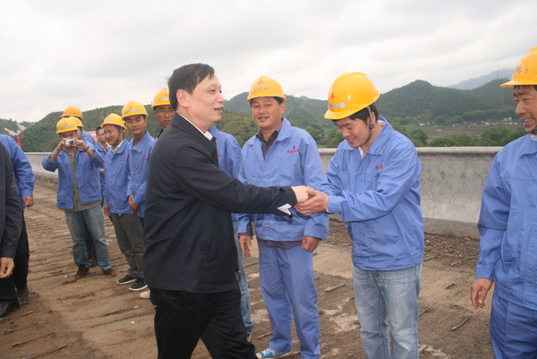 此次視察正值我標(biāo)實(shí)現(xiàn)單幅貫通之際。馬廳長(zhǎng)一行經(jīng)全南互通區(qū)、聶徐桃江大橋、1#預(yù)制梁場(chǎng),抵達(dá)我標(biāo)桃江大橋施工現(xiàn)場(chǎng)。一下車,馬廳長(zhǎng)便在我標(biāo)項(xiàng)目經(jīng)理羅權(quán)引領(lǐng)下來(lái)到全體在建員工面前,親切地與大家一一握手,并說道:“安徽路橋的同志們辛苦了!”隨后,在聽取了羅權(quán)的簡(jiǎn)短匯報(bào)后,馬廳長(zhǎng)一行對(duì)目前我標(biāo)項(xiàng)目建設(shè)情況有了進(jìn)一步的了解。針對(duì)年底建成通車的總體建設(shè)目標(biāo),馬廳長(zhǎng)詳細(xì)詢問了后續(xù)的施工計(jì)劃,羅權(quán)表示,在各級(jí)領(lǐng)導(dǎo)的關(guān)心幫助下,安徽路橋有信心也有決心按期完成建設(shè)任務(wù)。