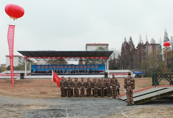 下午,在合肥警備區(qū)教導(dǎo)隊(duì)訓(xùn)練場,紅旗招展,彩球飄揚(yáng)。公司從各單位、各項(xiàng)目抽調(diào)的50名隊(duì)員經(jīng)過為期一周的軍事化訓(xùn)練,精神抖擻、整裝待發(fā)。15:00時(shí),演示活動(dòng)正式開始。隨著梅廳長一聲令下,隊(duì)員們高舉“安徽省公路工程保障大隊(duì)”旗幟,齊喊口號,跑步進(jìn)入現(xiàn)場,開始架設(shè)。在架設(shè)的同時(shí),進(jìn)行了現(xiàn)場同期聲解說。短短30分鐘內(nèi),隊(duì)員們分工明確,技術(shù)熟練,配合默契。在沒有機(jī)械設(shè)備的情況下,依靠人工肩扛手抬,迅速完成了桁架、橋面板等搭設(shè),將鋼橋推過河,隨后三輛炮車緩緩?fù)ㄟ^,進(jìn)行裝備通載檢驗(yàn)。至此,戰(zhàn)備鋼橋架設(shè)演示圓滿完成。演示活動(dòng)結(jié)束后,領(lǐng)導(dǎo)們上橋檢閱,親切地接見、慰問了參演隊(duì)員,并合影留戀。
