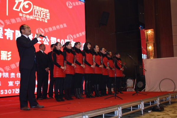 十年的汗水、十年的探索、十年的堅(jiān)守、十年的創(chuàng)新、十年鑄就的輝煌。晚會(huì)在由該公司在建項(xiàng)目宣寧路面02標(biāo)領(lǐng)唱、全體人員合唱的《明天會(huì)更好》中閉幕,這一刻,唱響的是10年來又好又快發(fā)展的頌歌;這一刻,傳遞的是安徽路橋路面人自信自強(qiáng)、團(tuán)隊(duì)協(xié)作的力量,這一刻,延續(xù)的是安徽路橋路面公司鑄就輝煌的信心。