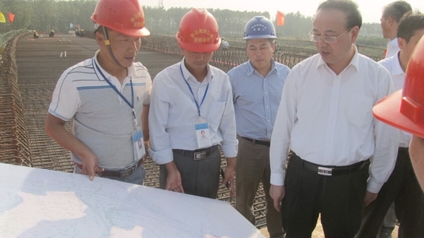張祥安一行先后檢查了滁馬03標(biāo)洪武路大橋和滁州南互通2#橋施工現(xiàn)場(chǎng),對(duì)建設(shè)情況給予了高度評(píng)價(jià)。他指出,滁馬高速工期緊,難度大,取得這樣的成績(jī)很不容易,同時(shí)也要求施工單位在抓好工程建設(shè)的同時(shí),抓實(shí)、抓好施工安全工作,確保萬無一失。最后,張祥安勉勵(lì)項(xiàng)目全體建設(shè)者們,要抓住機(jī)會(huì),再接再厲,創(chuàng)造更好的業(yè)績(jī)。