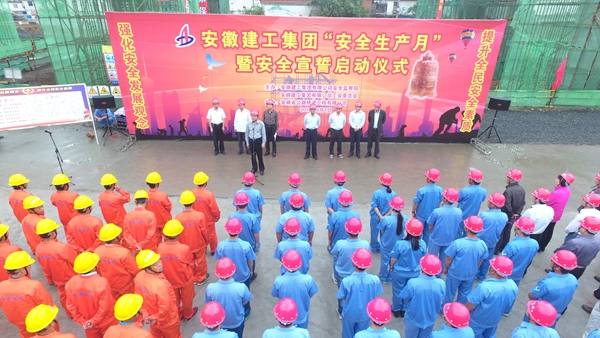 在集團公司工會主席徐曉光的帶領(lǐng)下,所屬各單位領(lǐng)導(dǎo)、安全管理人員,郎溪路項目全體管理人員及一線工人約200人舉起右手,鄭重宣誓:“我是一名安徽建工人,我鄭重宣誓,時刻注意安全,遵守安全法規(guī)。履行安全職責(zé),提高安全技能。杜絕三違現(xiàn)象,保證四不傷害。強化紅線意識,促進安全發(fā)展。為了家人幸福、企業(yè)發(fā)展,誓做建工‘安全人’”。莊嚴的誓詞久久回蕩在項目現(xiàn)場,更加堅定了全體建工人“強化紅線意識,促進安全發(fā)展”的信心和決心。
