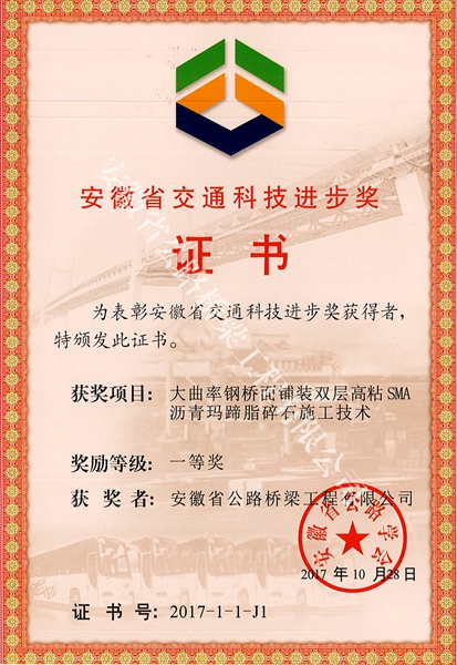 近年來,公司積極實(shí)施創(chuàng)新驅(qū)動(dòng)發(fā)展戰(zhàn)略,充分依托省級(jí)技術(shù)中心,重點(diǎn)立足新設(shè)備、新材料、新工藝運(yùn)用,大力推進(jìn)科技創(chuàng)新,持續(xù)加強(qiáng)科技成果轉(zhuǎn)化,以科技創(chuàng)新助推企業(yè)轉(zhuǎn)型發(fā)展、跨越發(fā)展、高效發(fā)展,取得了良好成績(jī)。此次兩項(xiàng)成果榮獲省公路學(xué)會(huì)交通科技進(jìn)步獎(jiǎng)一等獎(jiǎng),充分體現(xiàn)了在公路工程特級(jí)資質(zhì)新發(fā)展平臺(tái)上公司科技創(chuàng)新實(shí)力的進(jìn)一步增強(qiáng)。