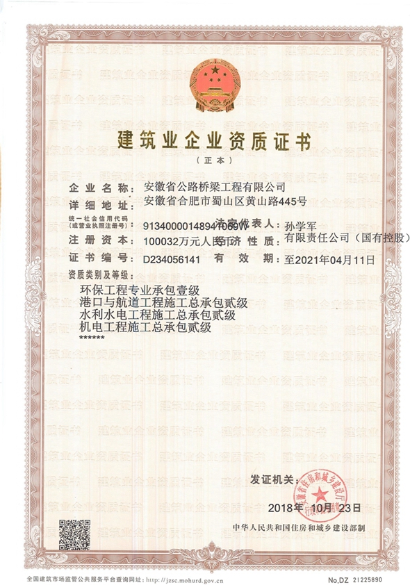 10月23日,公司環(huán)保工程專業(yè)承包壹級、水利水電工程施工總承包貳級、機電工程施工總承包貳級三項資質(zhì)順利通過安徽省住房和城鄉(xiāng)建設廳審查核準。三項新資質(zhì)的取得為公司進一步拓展非公路施工業(yè)務,實現(xiàn)經(jīng)營業(yè)務多領(lǐng)域發(fā)展打下了基礎(chǔ)。