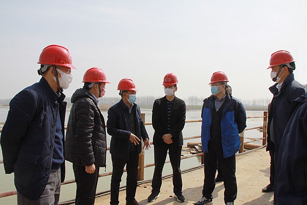 章后忠、張玉強一行詳細了解了項目疫情防控及復(fù)工進展情況,實地檢查了澮河特大橋樁基施工。