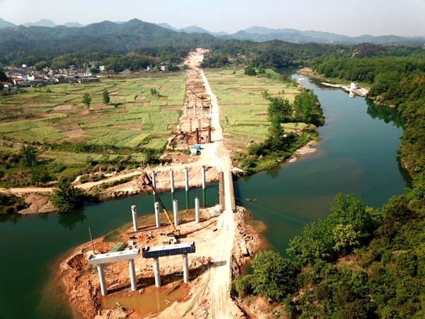 3月25日復(fù)興橋下部結(jié)構(gòu)基礎(chǔ)完成,3月31日蓮花山隧道右線削竹式洞門施工完畢,4月4日梁場首片梁板完成澆筑,4月5日路基一隊與二隊清表完成、便道實現(xiàn)貫通,全線路基、隧道、橋梁工程多點發(fā)力,工程建設(shè)穩(wěn)步推進。期間,受降雨影響,白洋河橋圩區(qū)遭到破壞,項目黨支部迅速成立應(yīng)急施工小組,全天駐點搶抓工期,目前白洋河水中墩已全部澆筑完畢,鋼便橋也已經(jīng)完成鋪設(shè),如期完成既定任務(wù),減輕了雨季到來前的施工壓力。