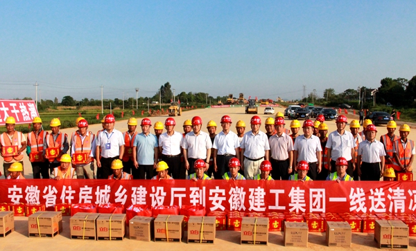 安徽省建設建材工會(廳文明辦)主任程德旺、股份公司總經理許克順、廬江縣副縣長孔斌,公司黨委副書記、總經理錢申春等參加慰問活動。
