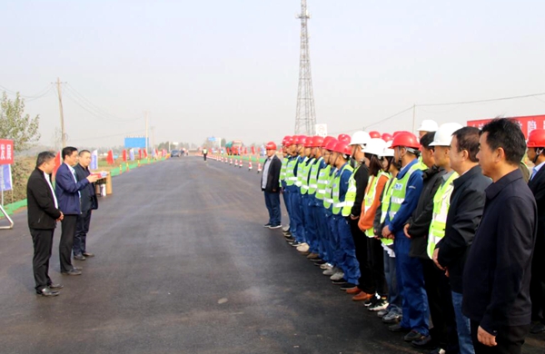 10月30日上午,歷經(jīng)七個(gè)月的奮戰(zhàn),淮北G237項(xiàng)目路面工程全線貫通?;幢笔薪煌ň贮h組書(shū)記、局長(zhǎng)韓海林,副局長(zhǎng)苗中治,淮北市公路管理服務(wù)中心黨委書(shū)記、主任楊國(guó)棟,公司黨委副書(shū)記、總經(jīng)理錢(qián)申春,黨委委員、副總經(jīng)理杜海峰到場(chǎng)祝賀,并看望慰問(wèn)全體參建人員。